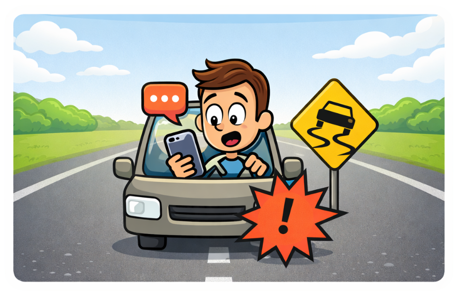 Looking at a phone makes it harder to react to sudden changes in traffic, pedestrians, or road hazards.
